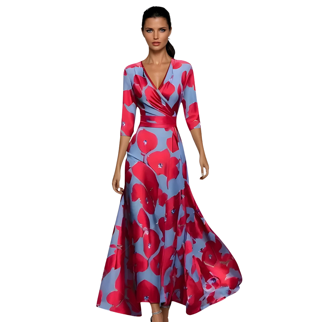 Ellis™ | Elegante maxi abito avvolgente a stampa artistica