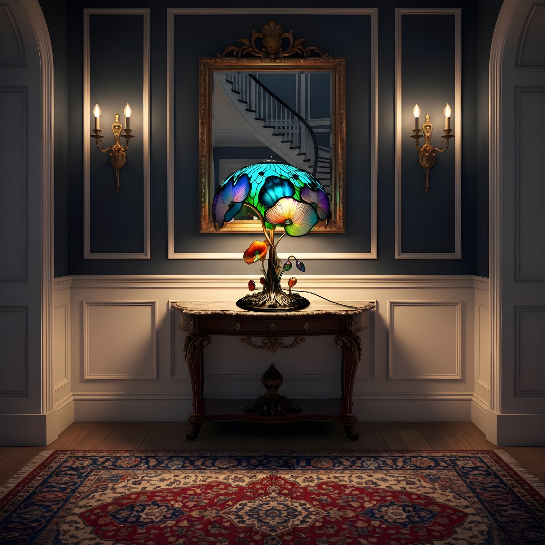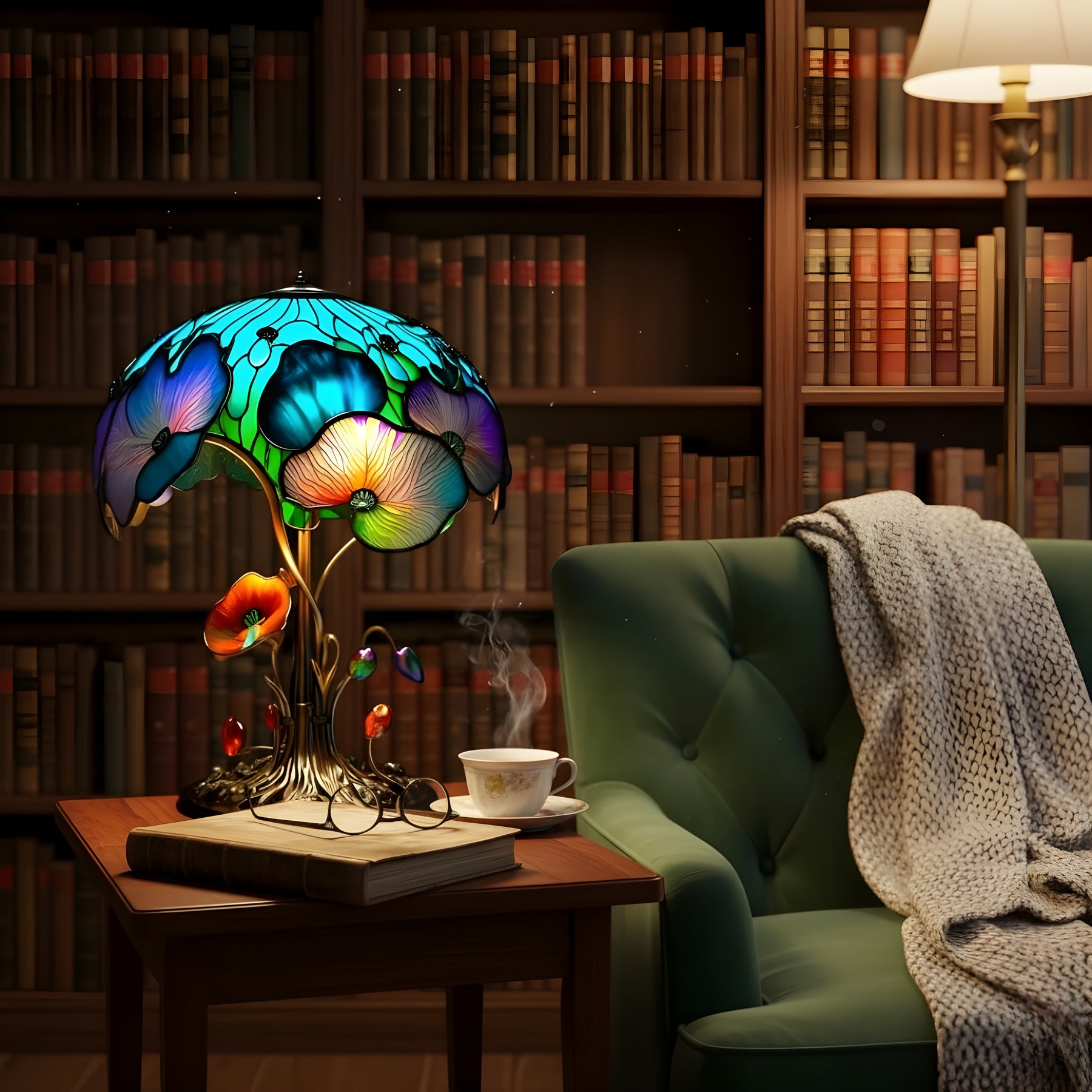 Cette lampe associe une forme champignon à des motifs floraux pour créer une atmosphère apaisante et accueillante.
