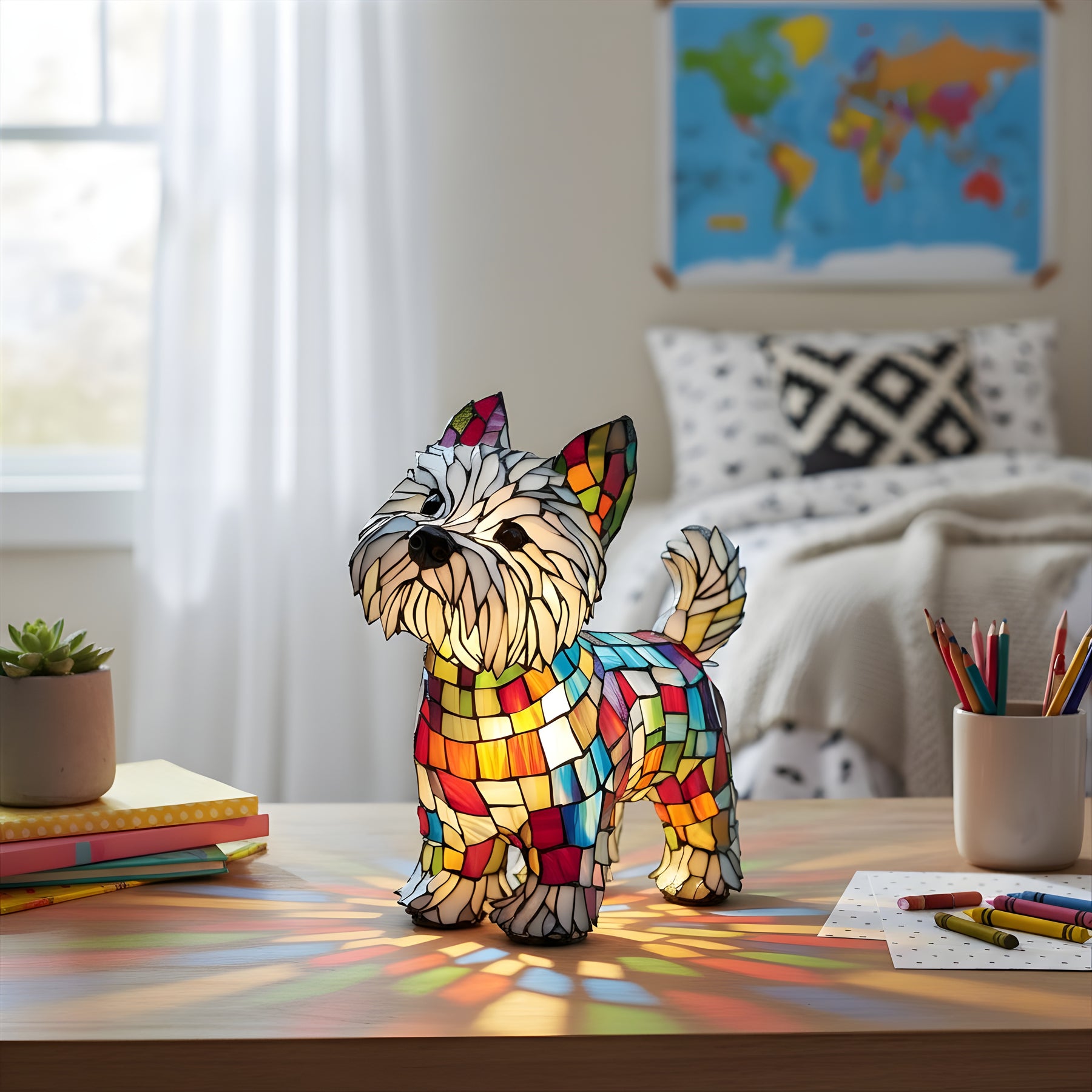 Cette lampe associe une forme de chien à un éclairage apaisant, créant une atmosphère accueillante et équilibrée dans la pièce.