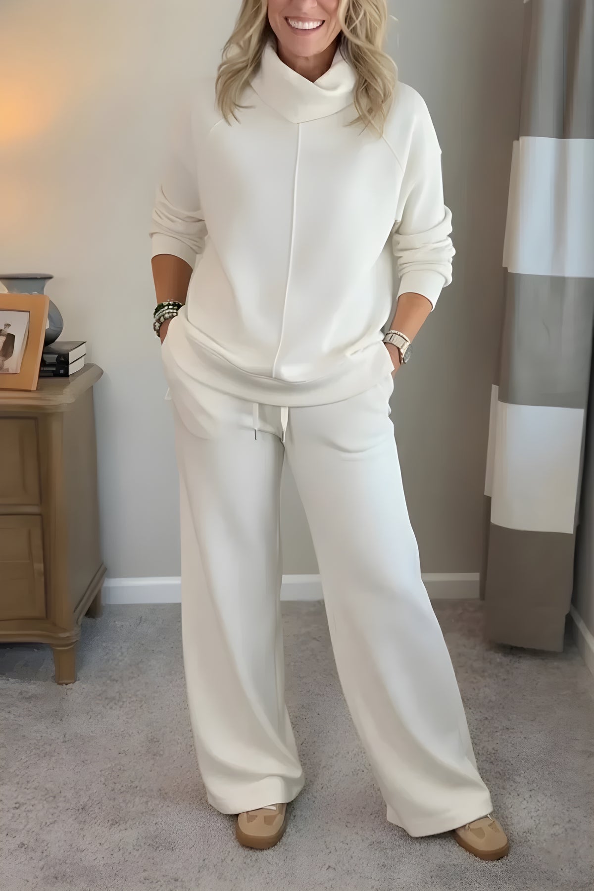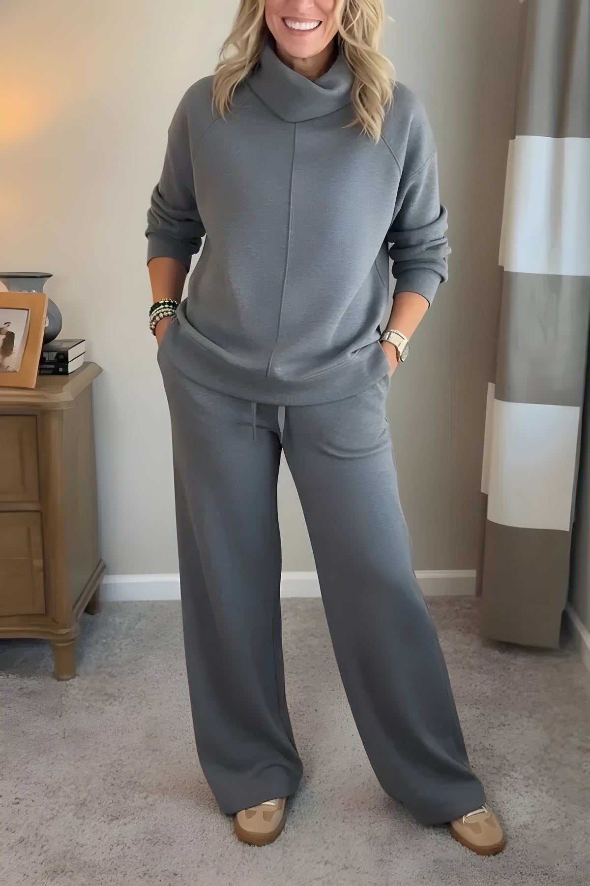 Un look coordonné qui évite de réfléchir à sa tenue, parfait à la maison ou pour une sortie rapide.